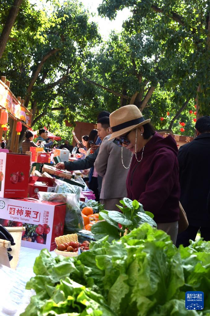 9月23日,在甘肃省兰州市皋兰县什川古梨园举办的庆祝中国农民丰收节活动现场,人们在挑选特色农产品。