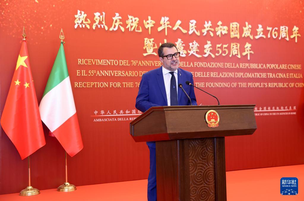这是马泰奥·萨尔维尼9月16日在庆祝中华人民共和国成立76周年招待会暨中意建交55周年招待会上致辞。