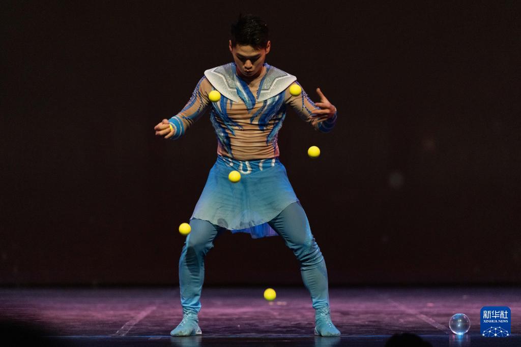 9月22日,在墨西哥首都墨西哥城,河南省杂技集团的演员在在墨西哥国家艺术中心表演杂技。新华社记者 李梦馨 摄