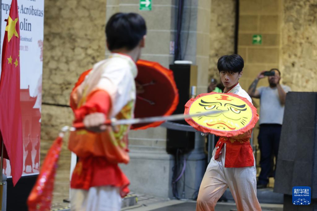 9月23日,在墨西哥首都墨西哥城,河南省杂技集团的演员在墨西哥参议院表演武术。新华社记者 李梦馨 摄