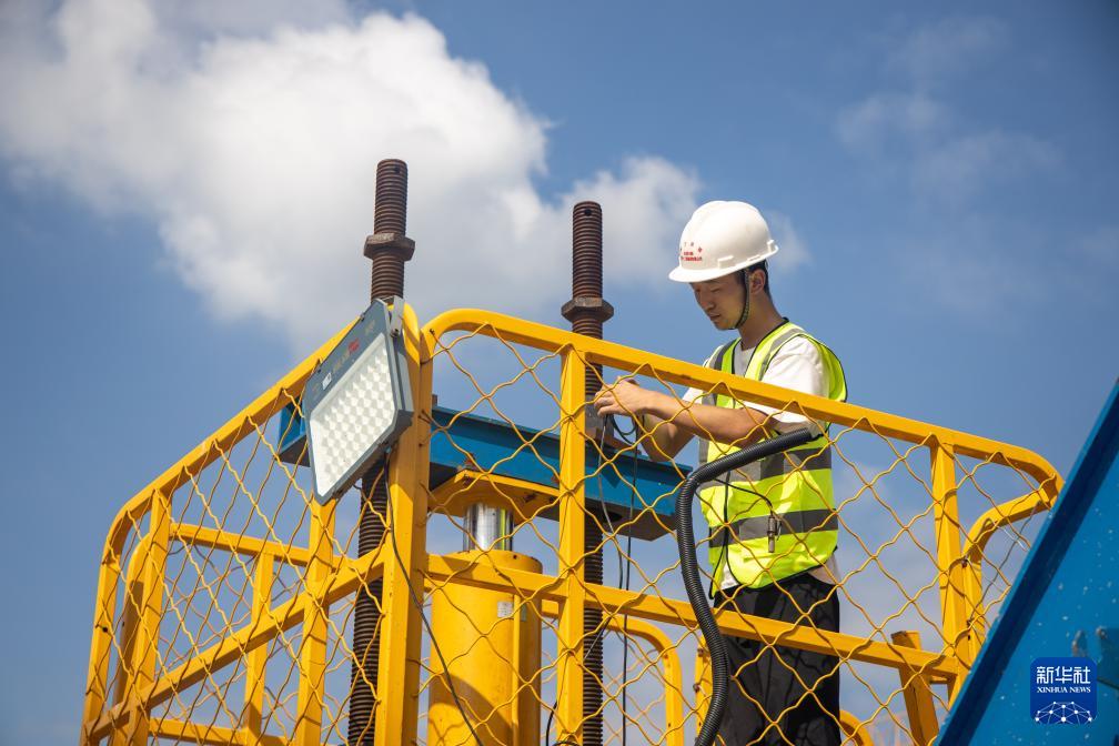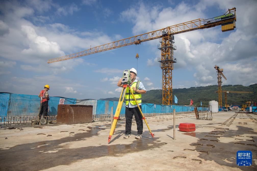 9月24日,工人在渝万高铁五步河双线特大桥建设现场施工作业。