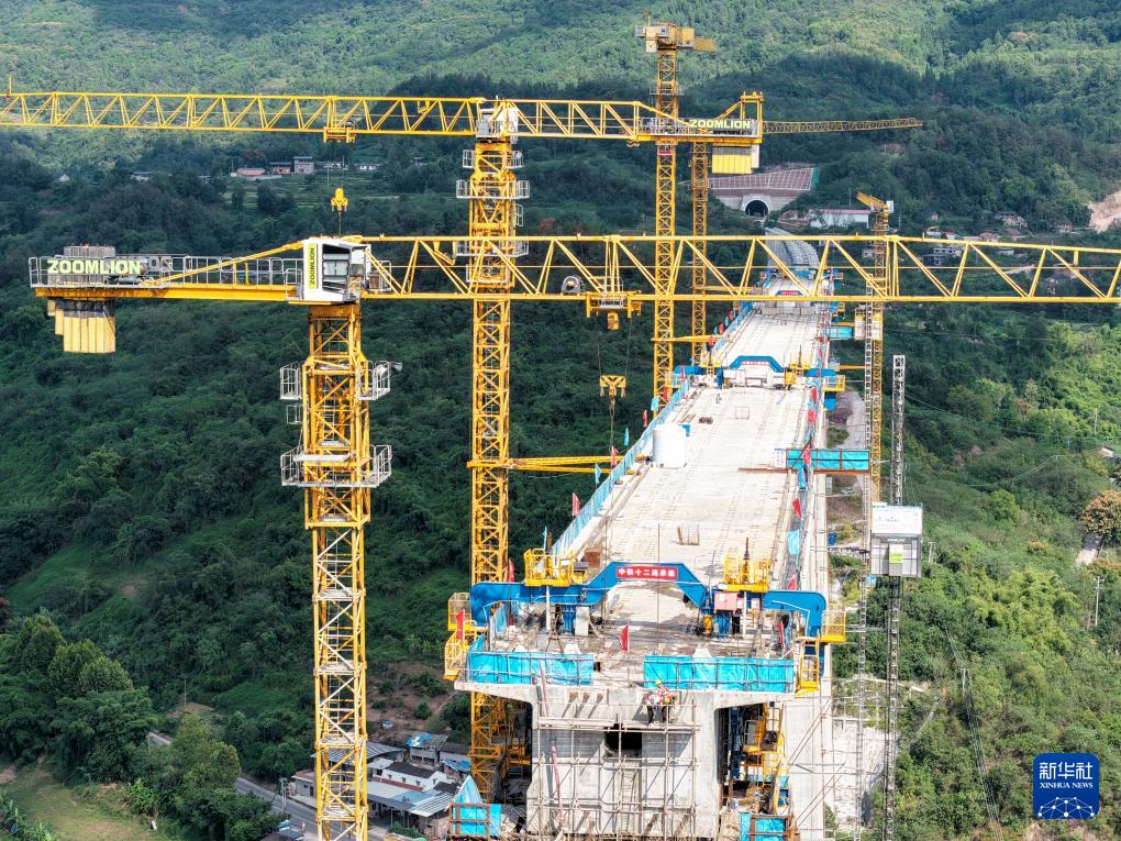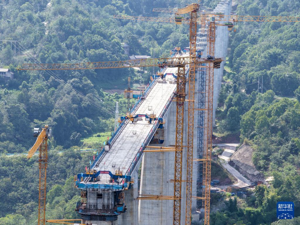这是9月24日拍摄的渝万高铁五步河双线特大桥建设现场(无人机照片)。
