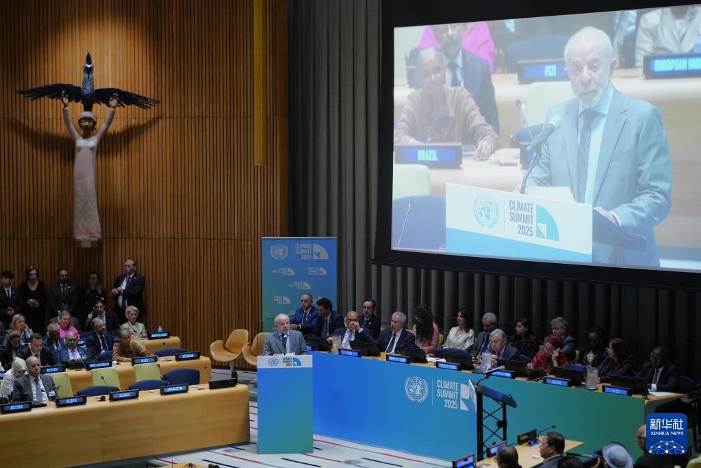 9月24日,在位于纽约的联合国总部,巴西总统卢拉在联合国气候变化峰会上致辞。卢拉呼吁采取全球行动,保护《巴黎协定》免受否认主义和单边主义的破坏,以应对气候变化。新华社记者 吴晓凌 摄