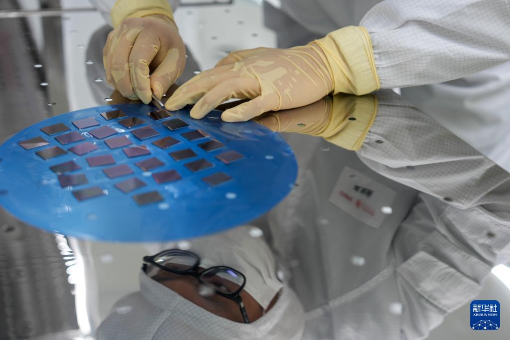 9月25日,工程师在上海交通大学无锡光子芯片研究院光子芯片中试线取片。