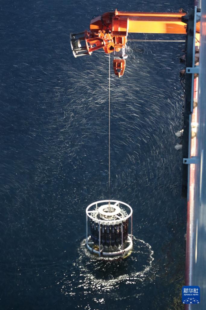 9月8日,“雪龙2”号回收CTD(温盐深剖面仪)。