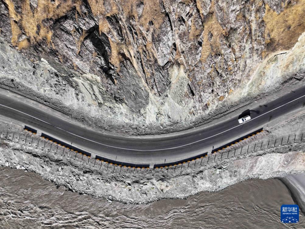 这是9月11日在塔吉克斯坦卡拉依洪姆村附近拍摄的中塔公路二期路段(无人机照片)。 新华社记者 李任滋 摄