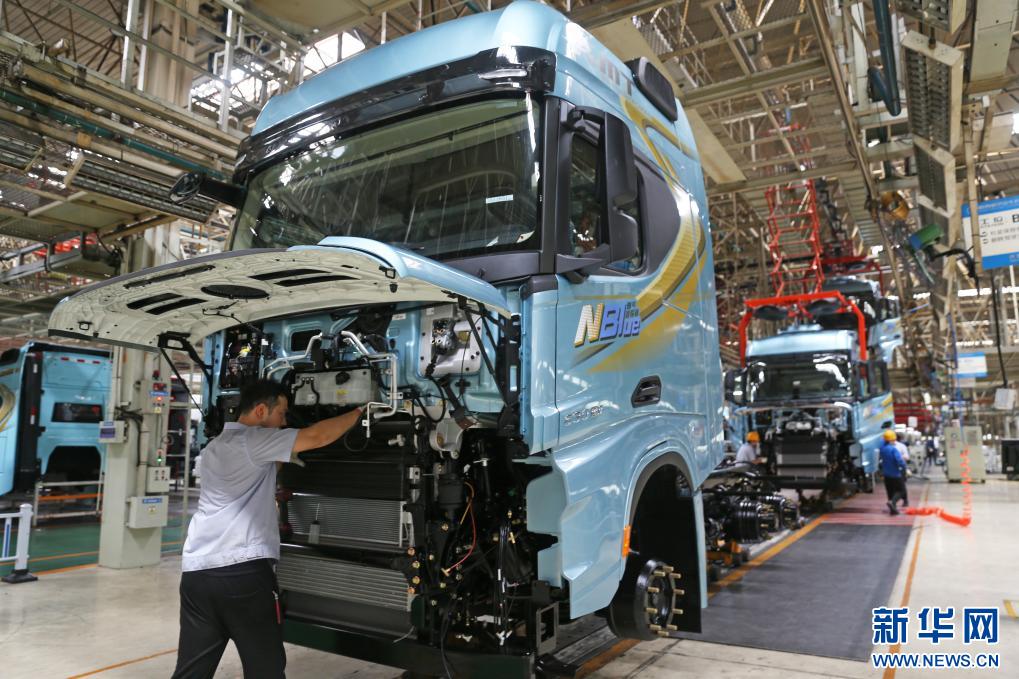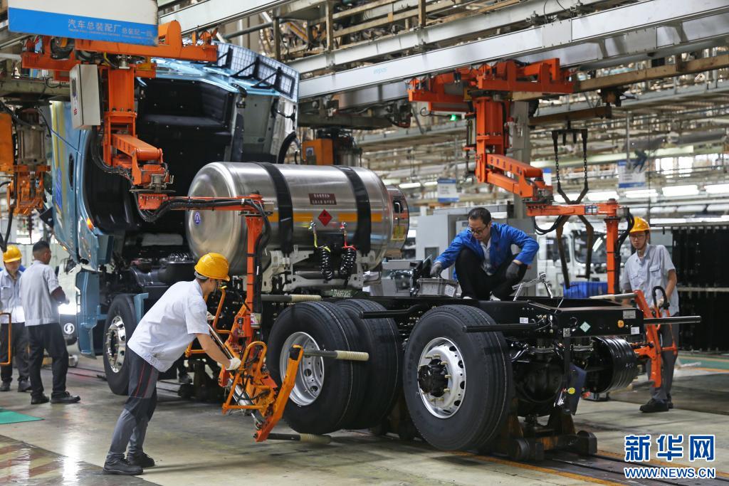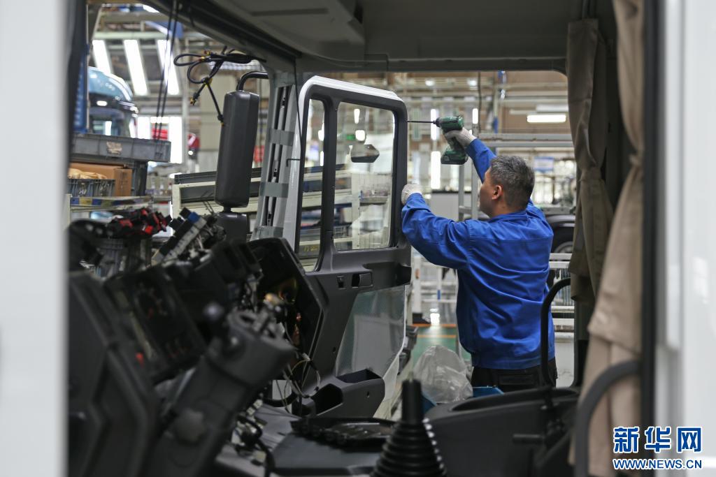 在陕西汽车控股集团有限公司汽车总装配车间,工人进行装配生产工作。新华网 王智超摄