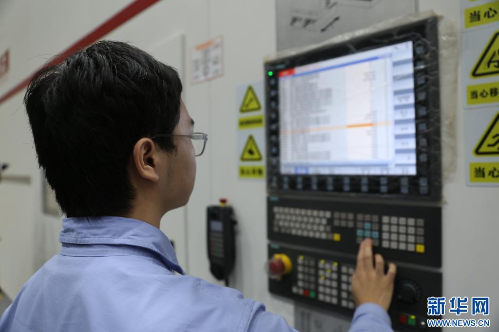 在西安三角防务股份有限公司内,生产工人正在进行零部件加工。新华网 王智超摄