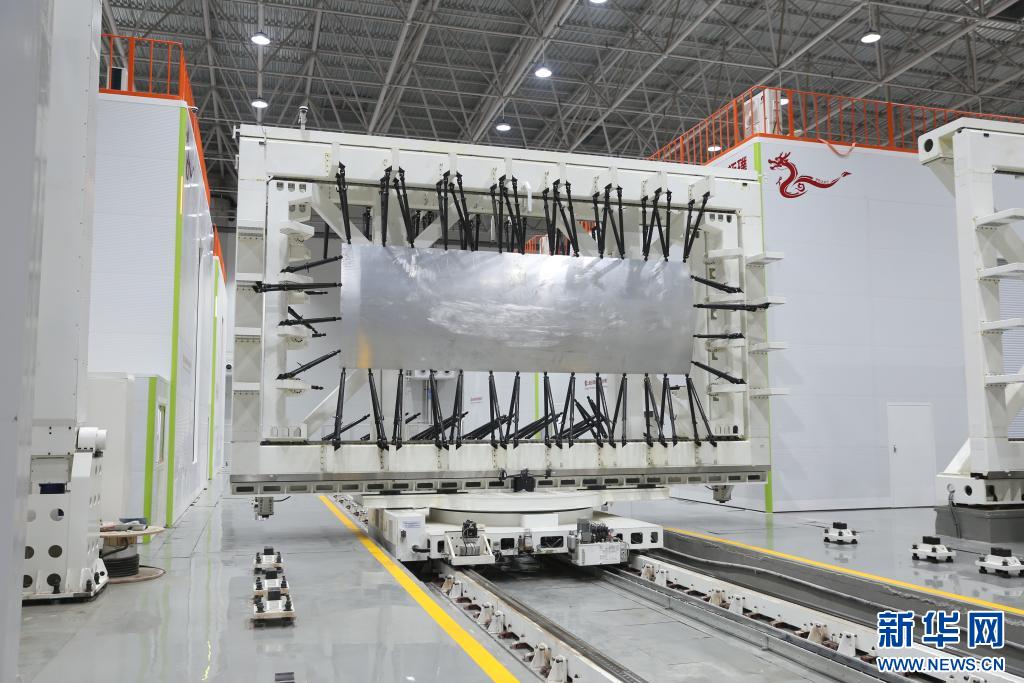 西安三角防务股份有限公司的蒙皮拉伸机。新华网 王智超摄