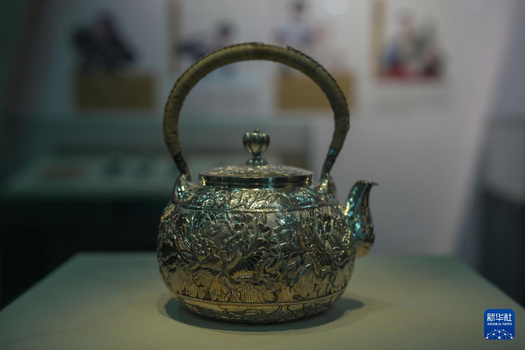 9月28日在青海省西宁市湟中区鲁沙尔镇阳坡村民族手工艺加工基地拍摄的银錾刻摆件。