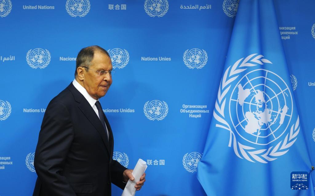 9月27日,在位于纽约的联合国总部,俄罗斯外交部长拉夫罗夫出席联大一般性辩论后举行的记者会。