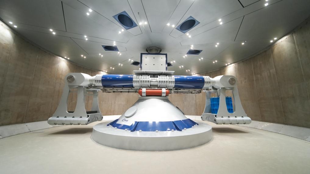 "CHIEF1300"的主机室是一间占地约230平方米的圆形地下室,位于中央的离心机就像是一个能够高速"自转"的巨型"天平"。