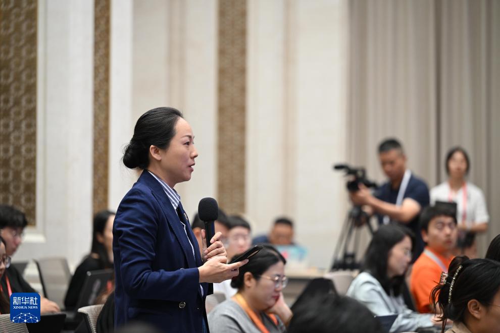 这是记者在现场提问。新华社记者 陈晔华 摄
