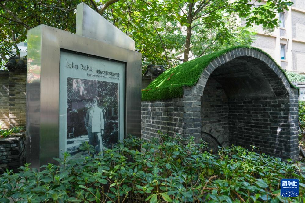 南京大学拉贝与国际安全区纪念馆室外展示的防空洞,约翰·拉贝当年建防空洞救助难民(9月28日摄)。
