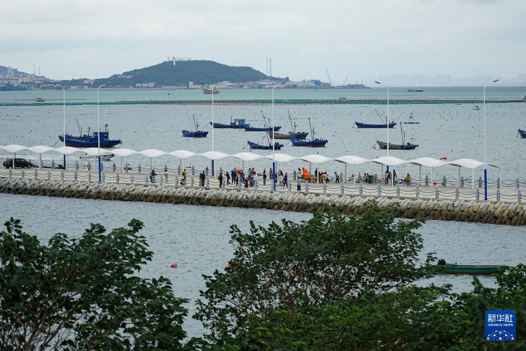 10月3日,游客在山东省烟台市庙岛码头等候船只。