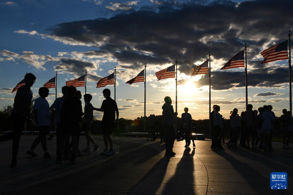 10月8日,在美国华盛顿,人们聚集在华盛顿纪念碑前。