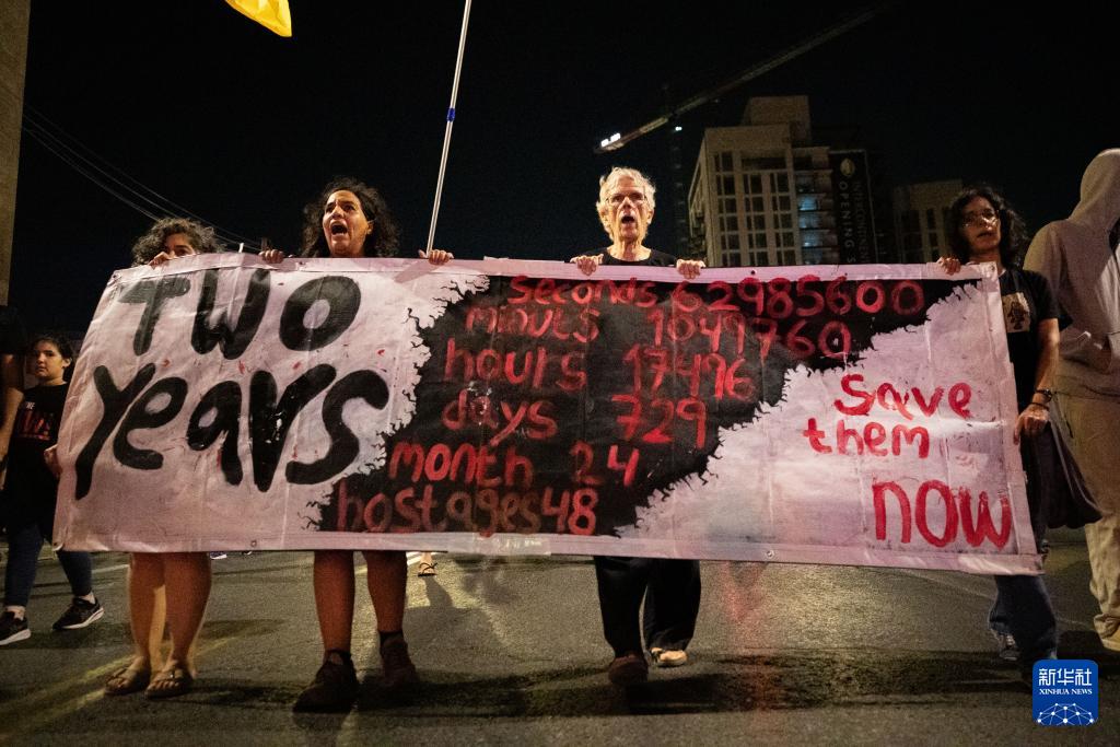 10月4日,人们在耶路撒冷参加游行集会,要求政府迅速在加沙地带实现停火。新华社记者 陈君清 摄