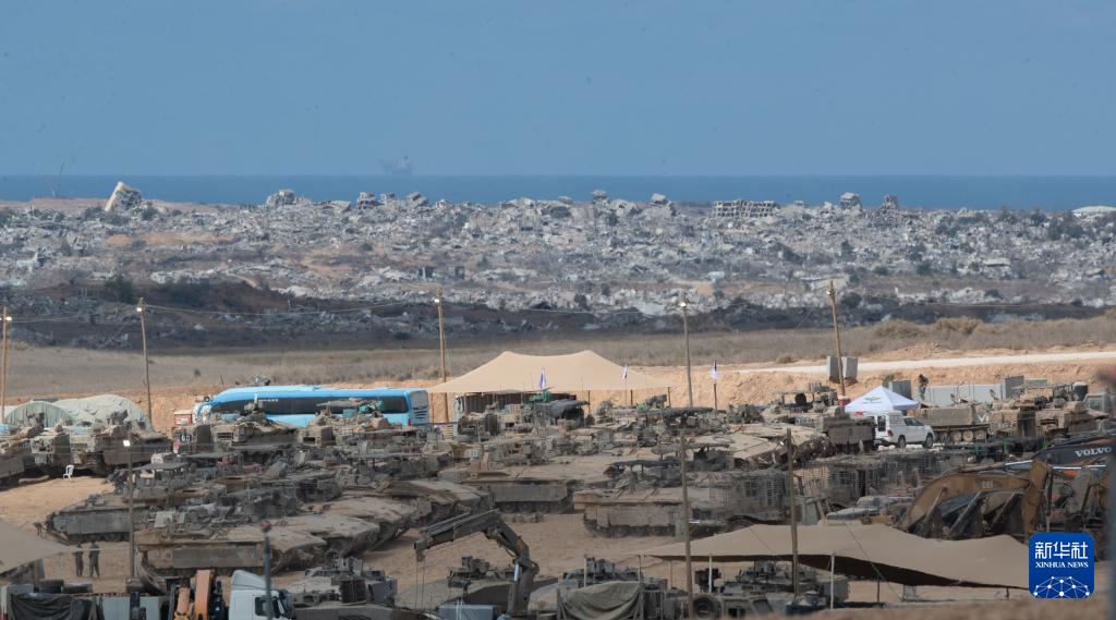 这是10月10日停火生效后拍摄的位于加沙边境的以军部队。新华社记者 陈君清 摄