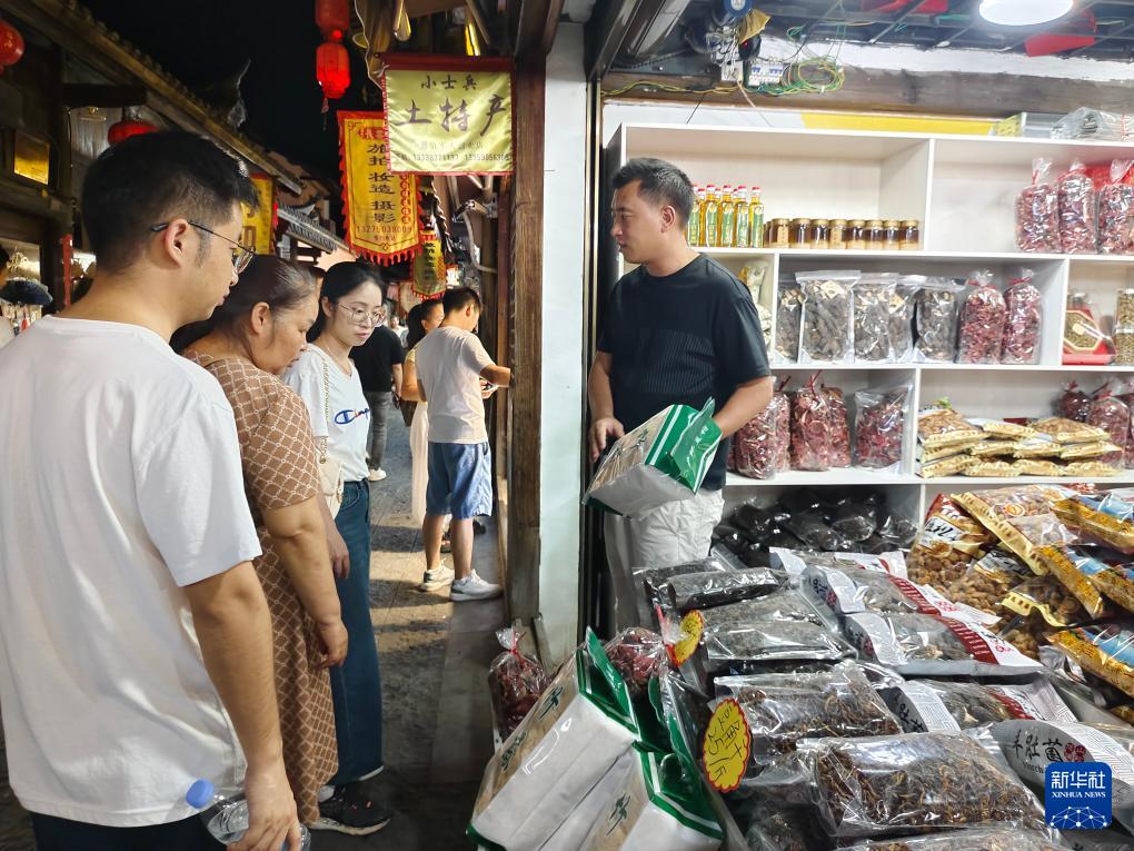 10月6日,游客在福建省长汀县店头街一家特产店购物。新华社记者 李昊泽 摄