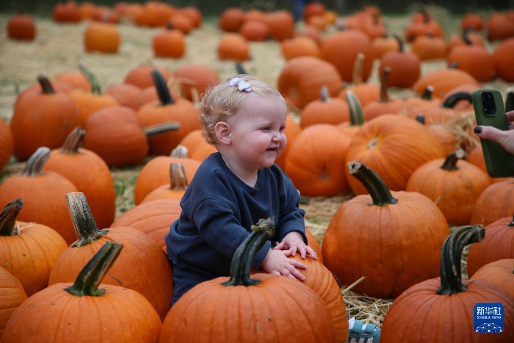 人们在南瓜集市上观赏、挑选南瓜,庆祝金秋和丰收,为即将到来的万圣节做准备。