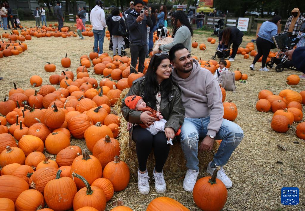 人们在南瓜集市上观赏、挑选南瓜,庆祝金秋和丰收,为即将到来的万圣节做准备。