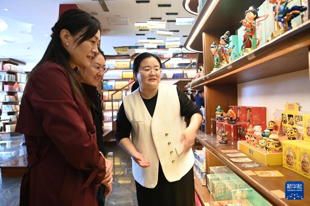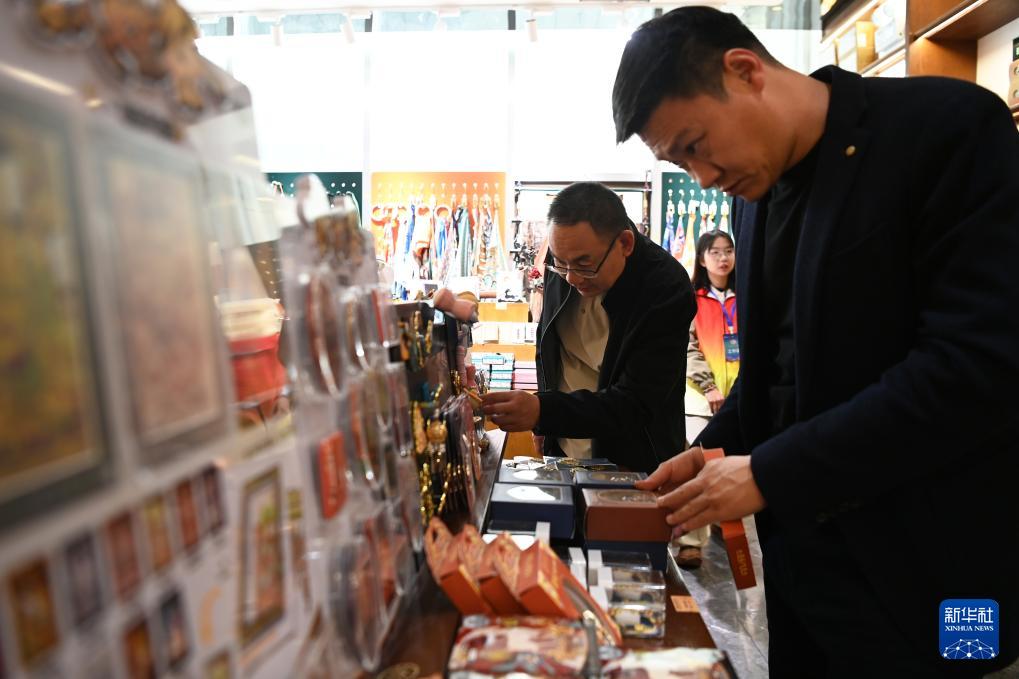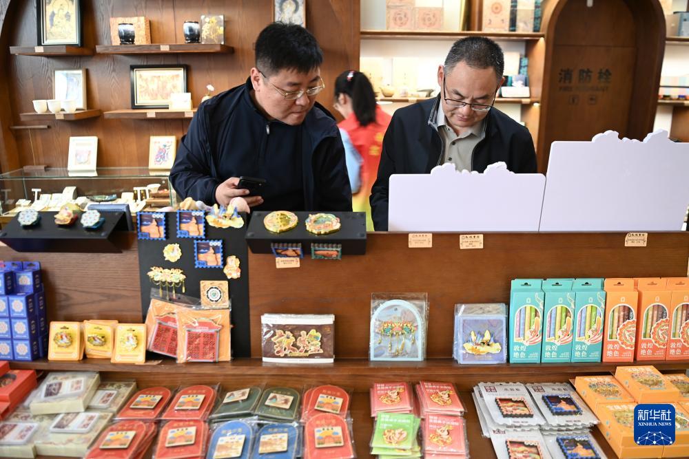 10月11日,游客在敦煌书局选购文创产品。