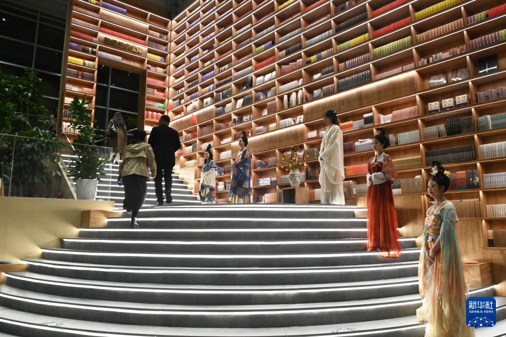 10月11日,游客在敦煌书局参观游览。