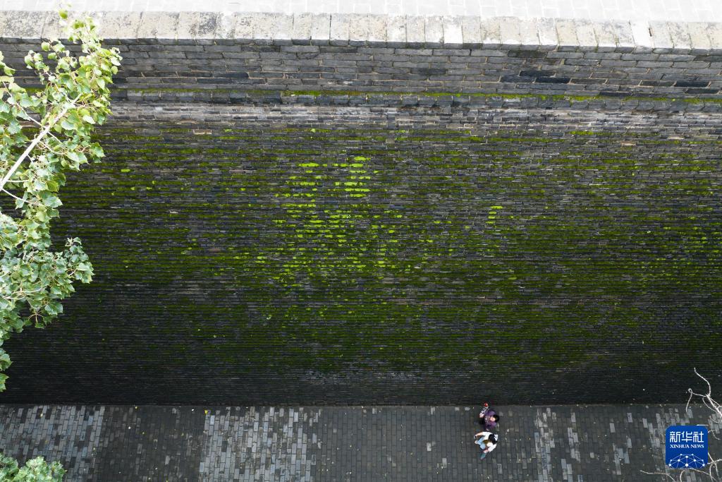 西安城墙始建于隋唐、扩建于明代,是中国现存历史最悠久、保存最完整的古代城垣建筑。连绵秋雨过后,苔藓等植物为西安城墙披上了一层绿色的外衣,吸引市民和游人驻足观看、拍照。