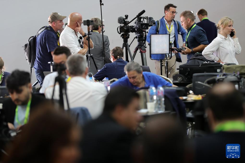 10月13日,在埃及沙姆沙伊赫,记者在沙姆沙伊赫峰会的媒体中心工作。