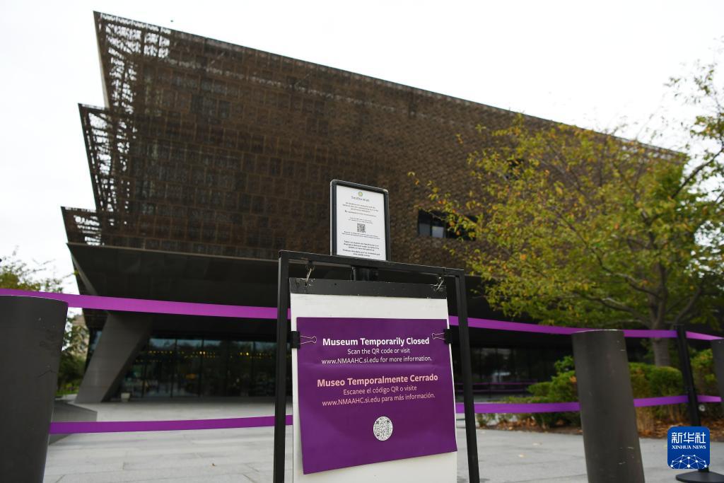 10月12日,在美国华盛顿,公告牌显示非洲裔美国人历史与文化国家博物馆因联邦政府“停摆”而关闭。