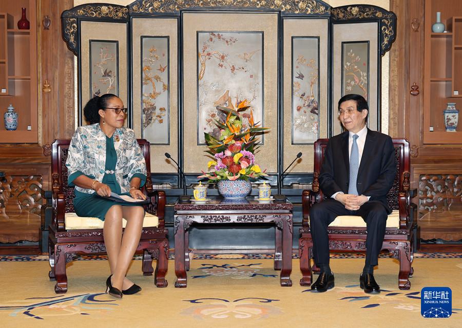 王沪宁表示,多米尼克是中国在加勒比地区的好朋友、好伙伴。今天上午,习近平主席同总统女士举行会见,就中多关系发展达成重要共识。中方愿同多方一道,以总统女士此次访问为契机,继续拓展各领域合作,高质量共建"一带一路",推动中多友好关系不断深入发展。