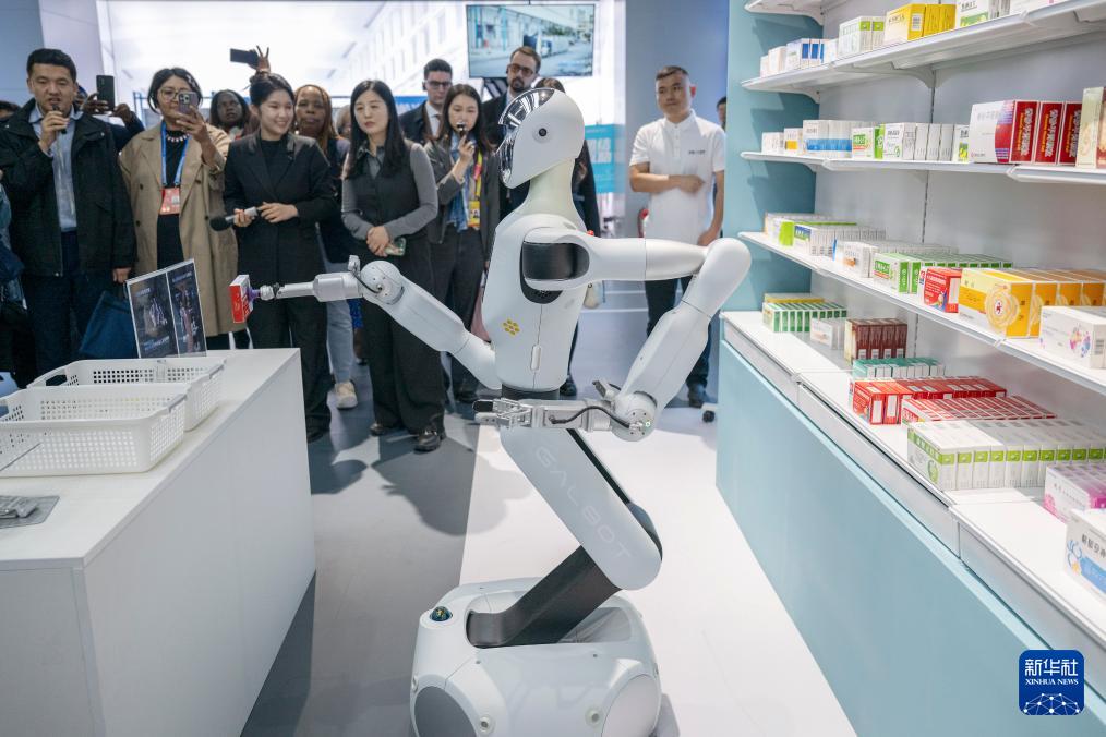 10月14日,嘉宾在北京经开区机器人大世界观看机器人拿取药品。