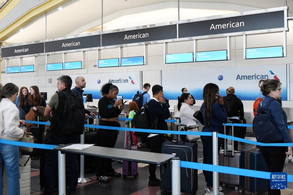 10月10日,在美国弗吉尼亚州阿灵顿的里根国家机场,人们办理值机手续。