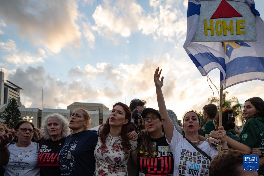 10月9日,在以色列特拉维夫,人们获悉加沙停火协议的消息后相互庆祝,期待被扣押的人员早日获释。