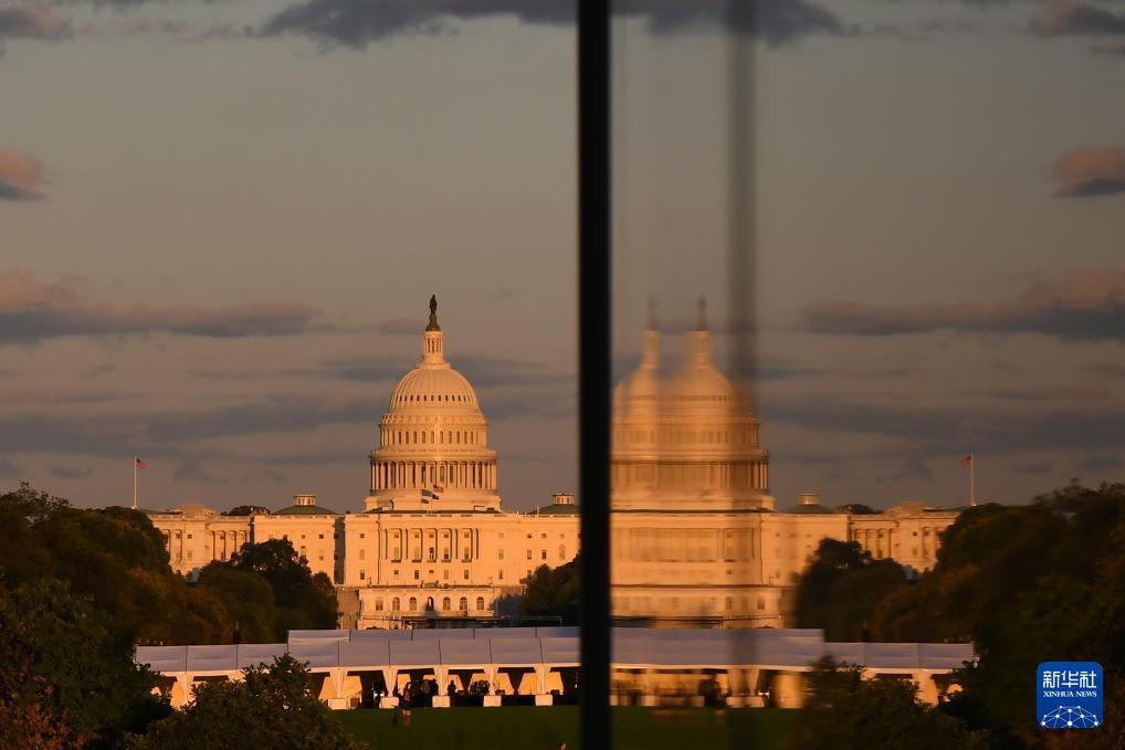 这是10月8日在美国华盛顿拍摄的日落时分的国会大厦。