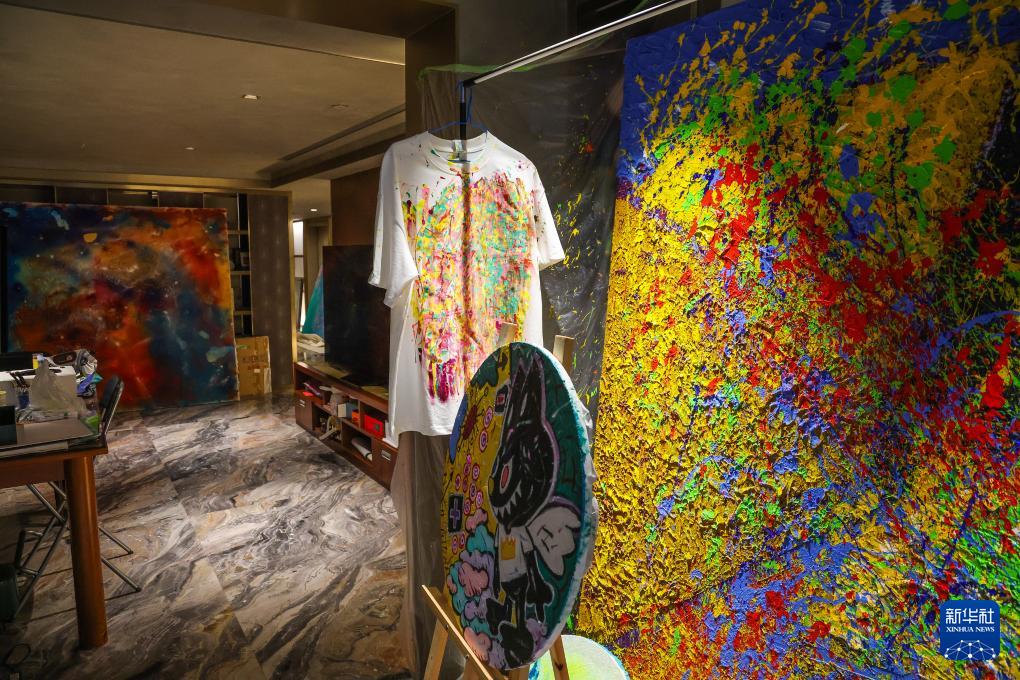 这是8月8日在王剑书位于北京的画室内拍摄的他的作品。