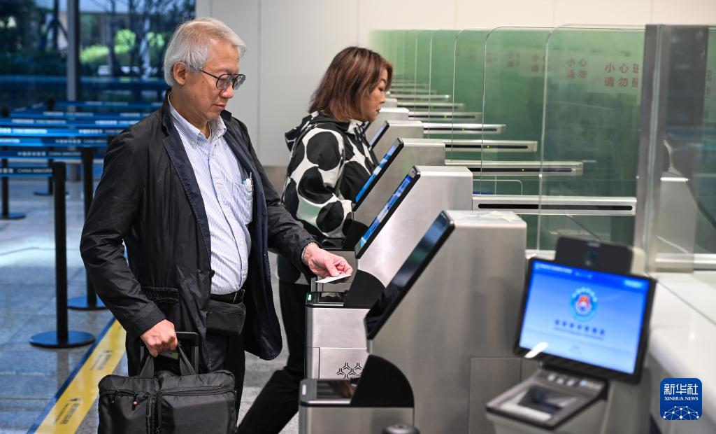 10月15日,入境旅客在海口美兰边检站使用快捷通道通关。