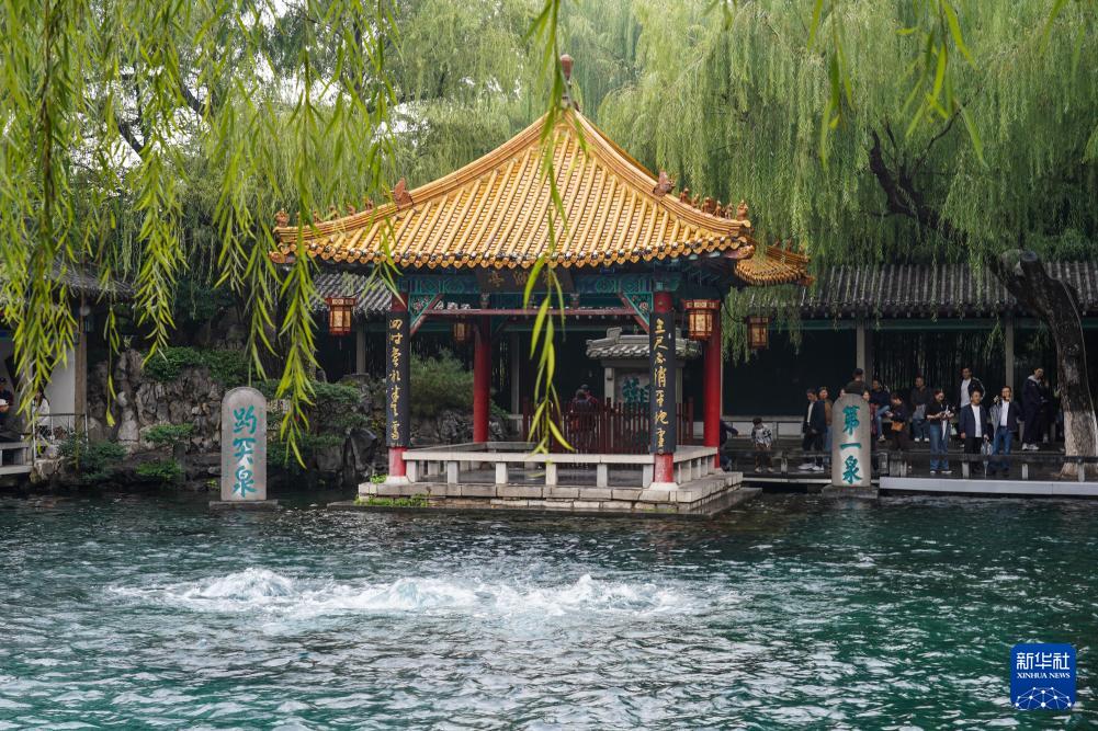 受近期降雨影响,山东省济南市群泉奔涌,吸引游客前来观赏。