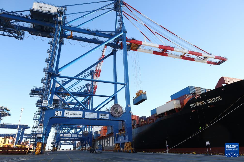 10月19日,从中国宁波舟山港出发的中欧北极快航航线首艘货船抵达波兰北部格但斯克港。新华社记者 崔力 摄