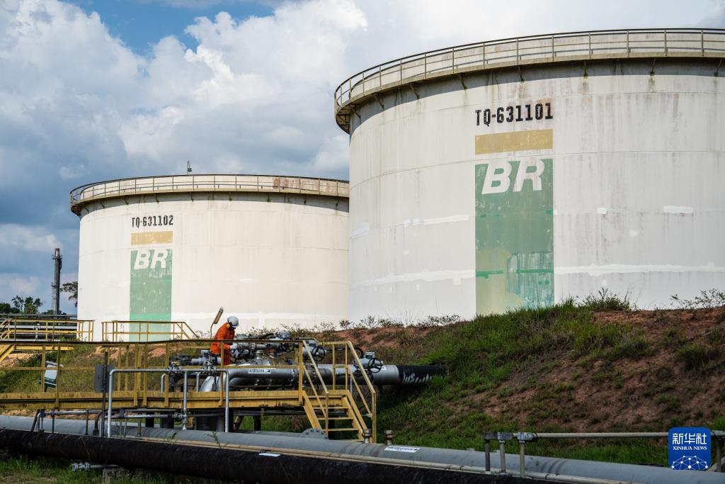 10月16日,在巴西亚马孙州的乌鲁库油气生产基地,一名工作人员进行日常巡检。
