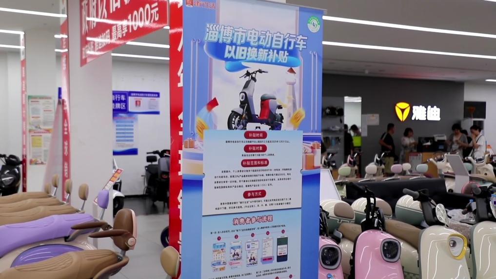同时,淄博市还积极利用家电等消费品以旧换新政策,开展一系列促消费活动,推动消费市场持续升温。当地对"以旧换新"的电动自行车消费者,按照产品最终销售价格的20%给予补贴,每辆最高补贴500元。