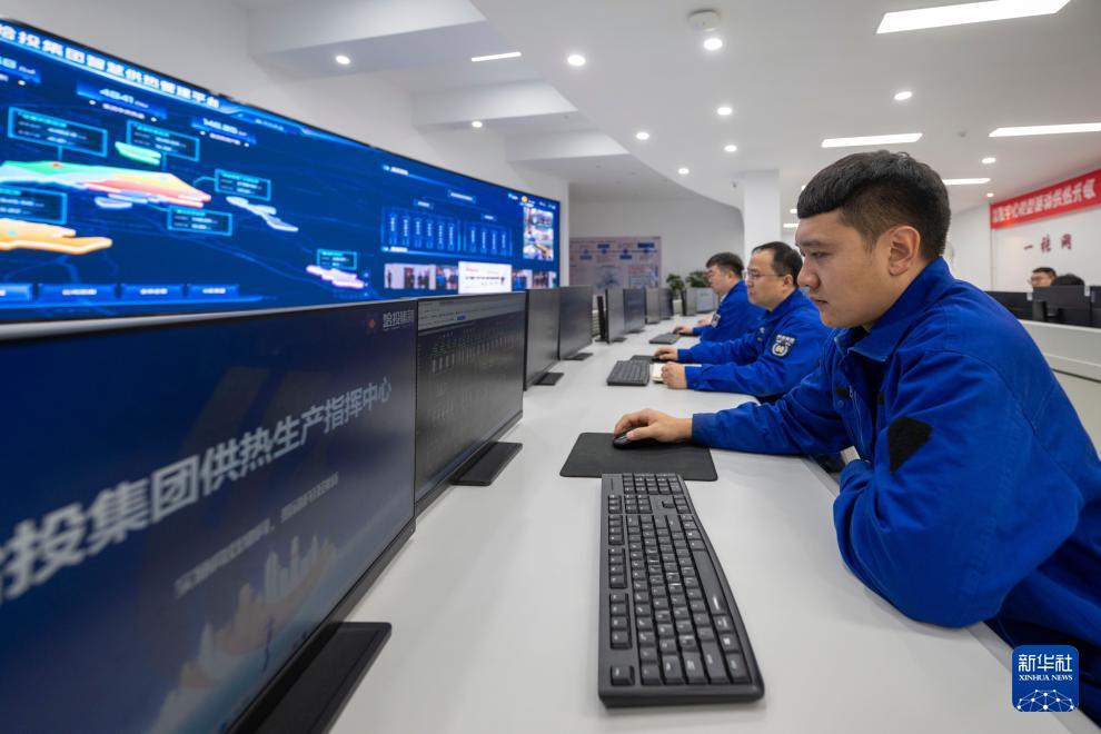 10月20日,在哈尔滨投资集团有限责任公司供热生产指挥中心,工作人员在监测供热情况。