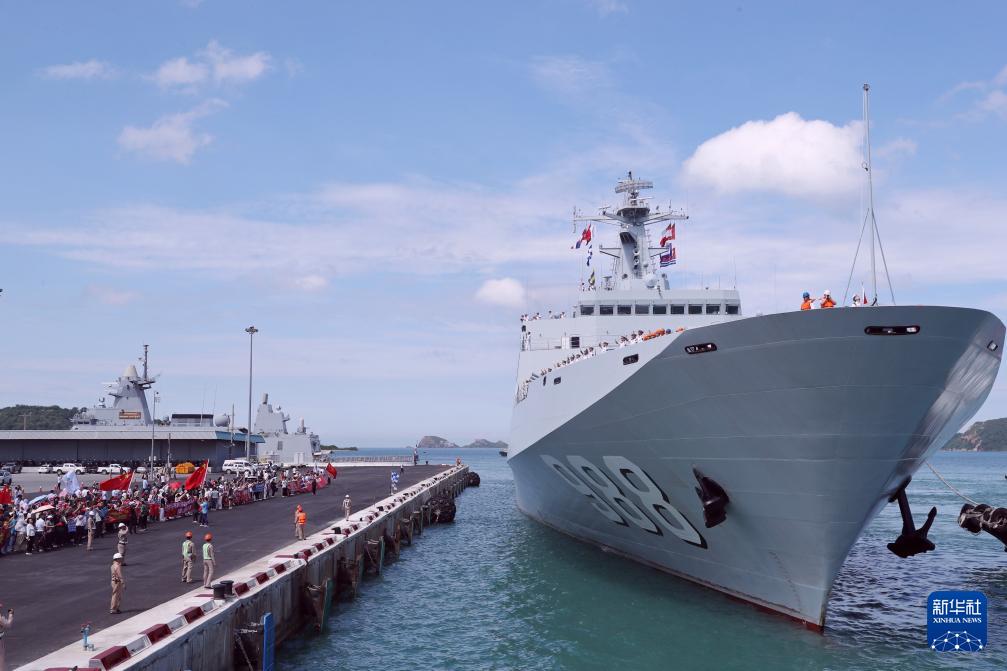 当日上午,中国海军83舰编队抵达泰国梭桃邑港,开始对泰国进行为期4天的友好访问。