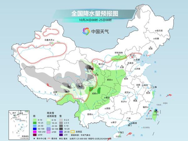 其中,今天,新疆沿天山地区西段,青海东部和南部、甘肃西南部、川西高原北部、西藏北部等地部分地区有小到中雪或雨夹雪,其中,西藏东北部、青海东南部、甘肃西南部、川西高原北部等地部分地区有大雪或暴雪;西北地区东南部、四川盆地大部、云南西部、海南岛、台湾岛等地部分地区有小到中雨,其中,海南岛东南部、台湾岛东北部等地部分地区有大雨或暴雨。
