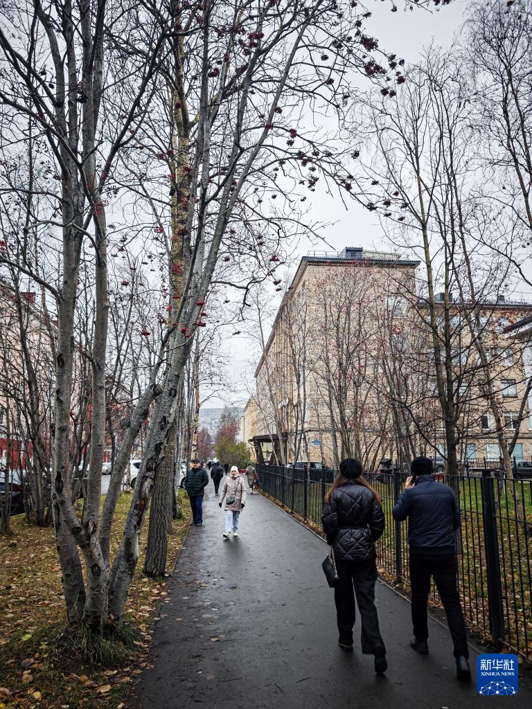 这是10月24日在俄罗斯摩尔曼斯克市拍摄的街景。
