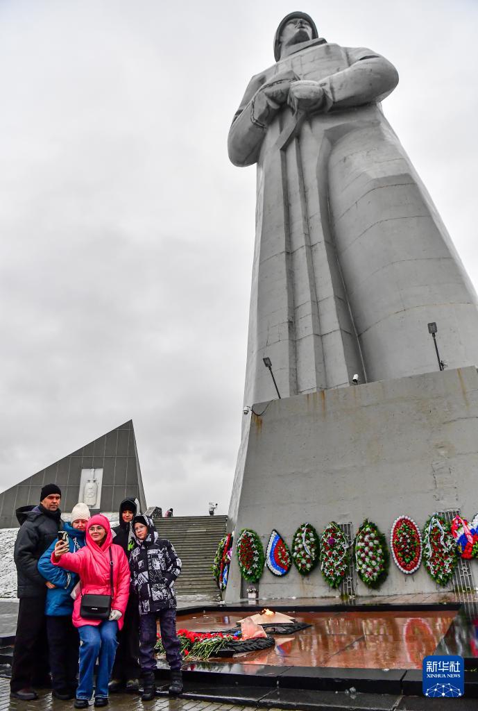 10月22日,游客在俄罗斯摩尔曼斯克市与纪念二战时期北极守卫者的“阿廖沙”雕像合影留念。“阿廖沙”雕像于1974年10月落成。