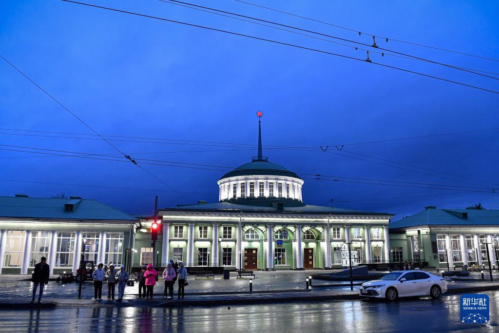 这是10月22日拍摄的俄罗斯摩尔曼斯克市火车站。该车站以其富有历史感的外观,成为当地的著名地标建筑。