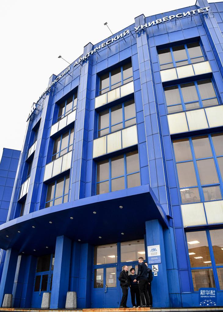 10月24日,学生站在俄罗斯摩尔曼斯克北极大学的一栋教学楼前。摩尔曼斯克北极大学是俄罗斯联邦北极地区的科学教育中心,开设包括北方航道开发、矿产资源勘探、渔业、生物技术、数字化和环境安全等专业,目前有超过9000名在校学生。