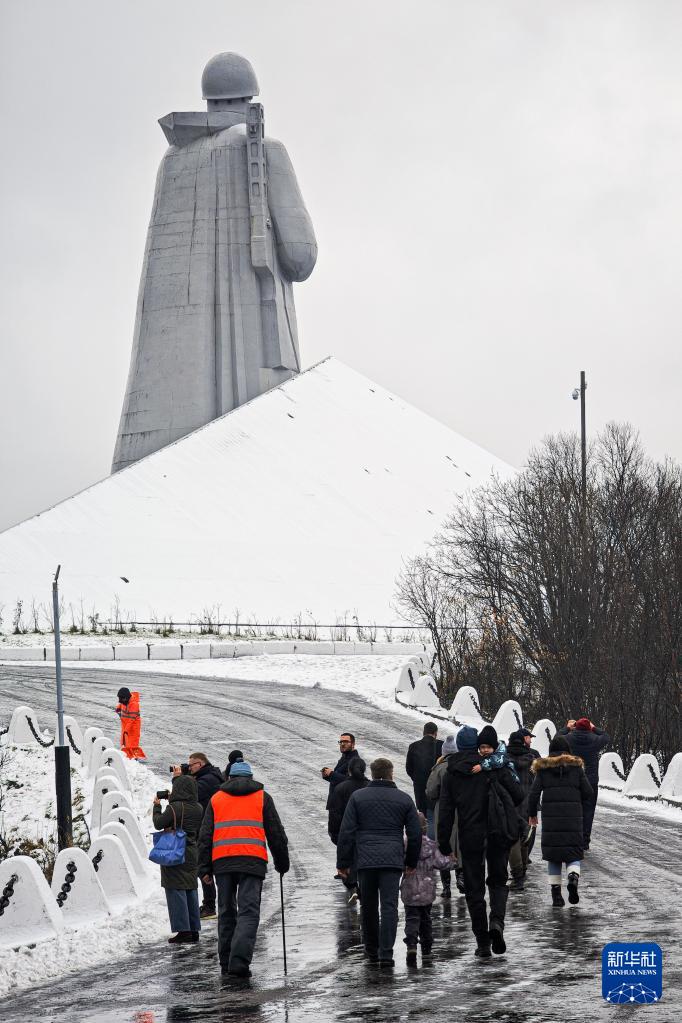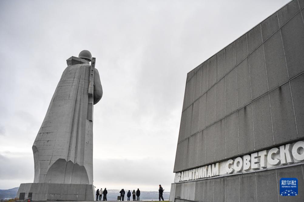10月22日,游客在俄罗斯摩尔曼斯克市参观纪念二战时期北极守卫者的“阿廖沙”雕像。“阿廖沙”雕像于1974年10月落成。