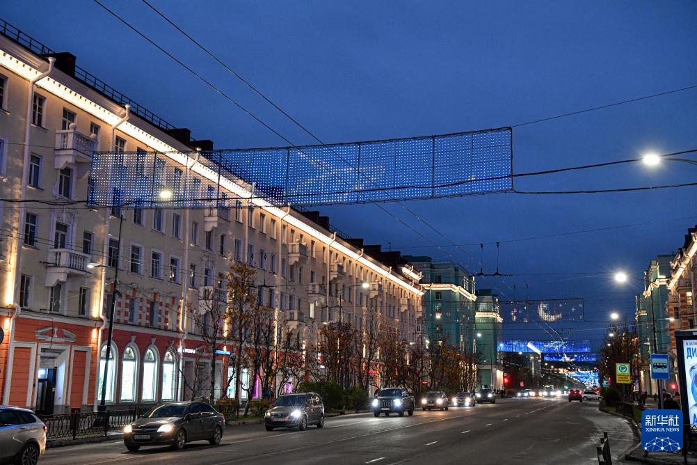 这是10月24日在俄罗斯摩尔曼斯克市拍摄的该市主干道列宁大街街景。